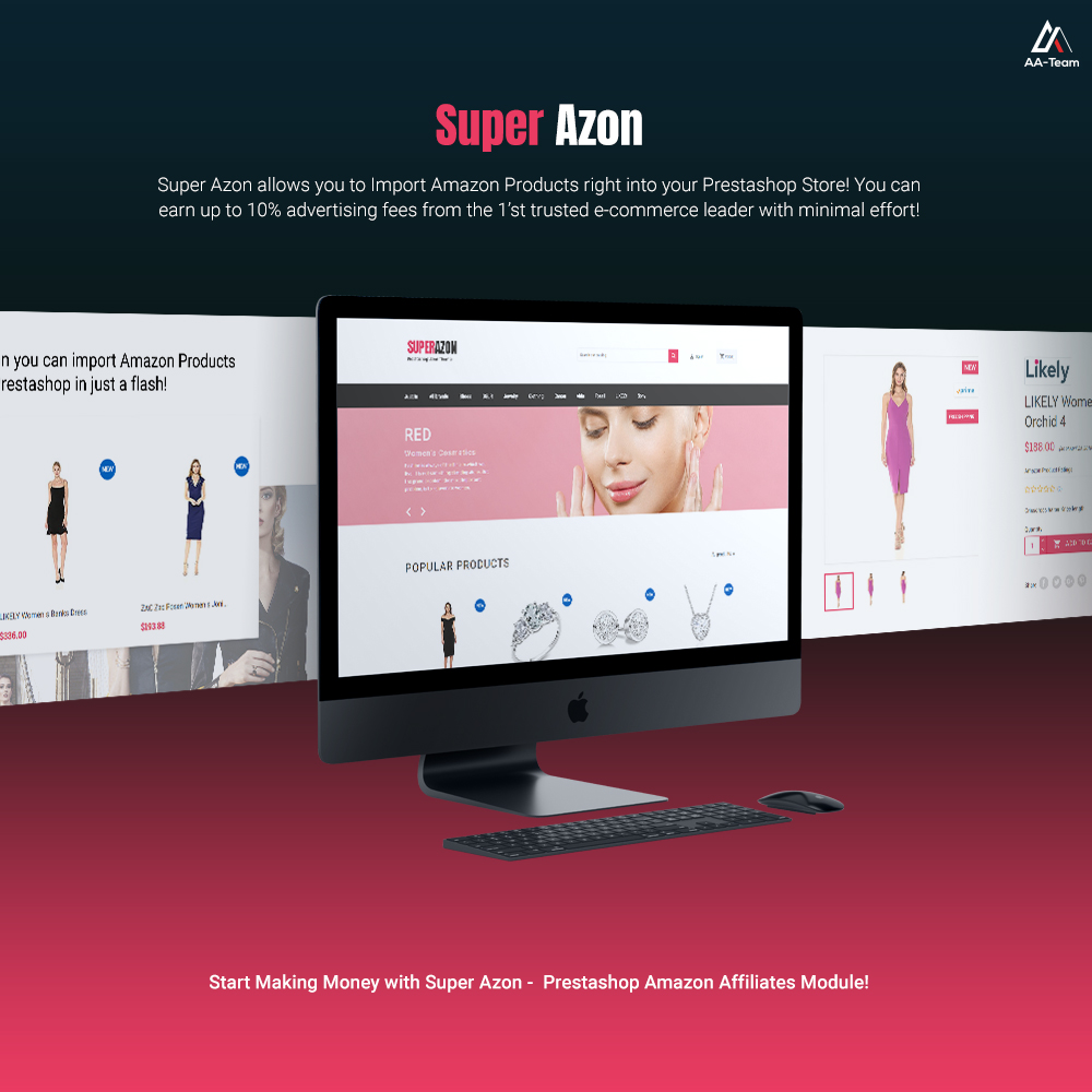 Super Azon, Amazon Ürünlerini doğrudan Prestashop Mağazanıza aktarmanıza olanak tanır! Minimum çabayla 1. güvenilir e-ticaret liderinden %10'a varan reklam ücreti kazanabilirsiniz!
